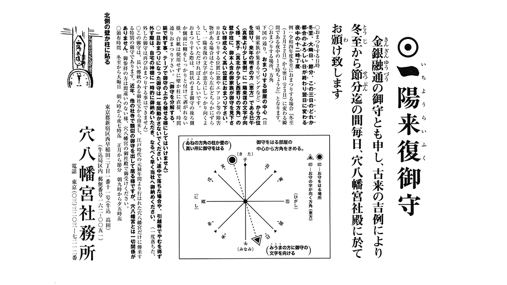 こちらのページは、八雲が作成した、穴八幡宮の一陽来復御守の貼り方のページです。