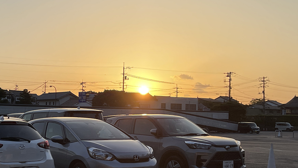 神楽殿に一番近く最も大きい「大駐車場」に車を停めると、もう少しで日没。