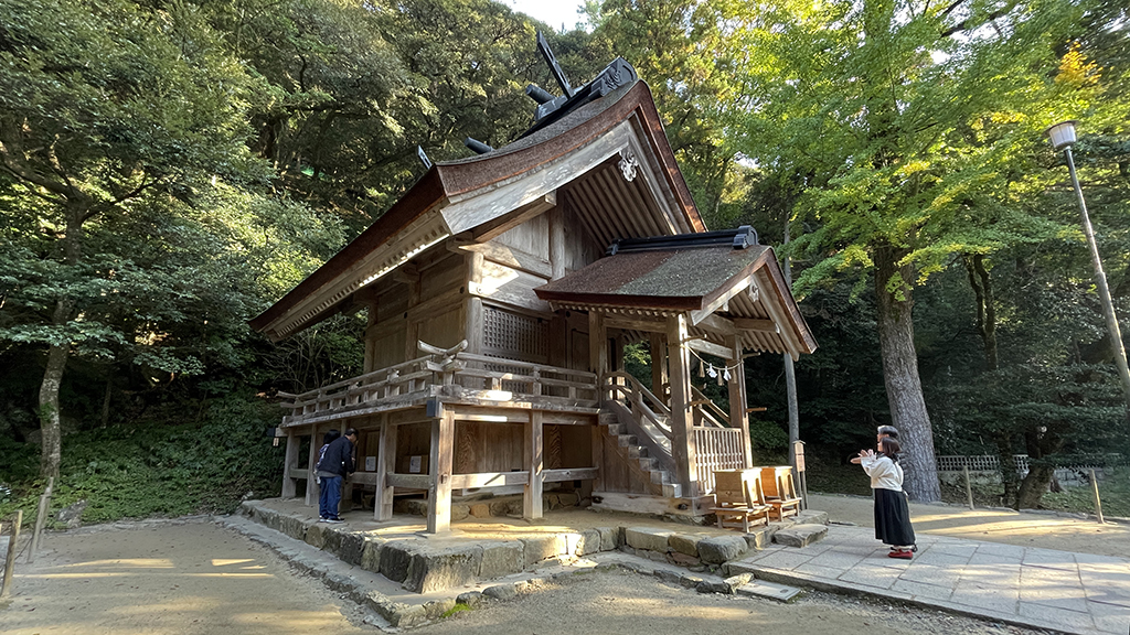 少し歩くと、本殿の西側にあたるところに、拝所があります。