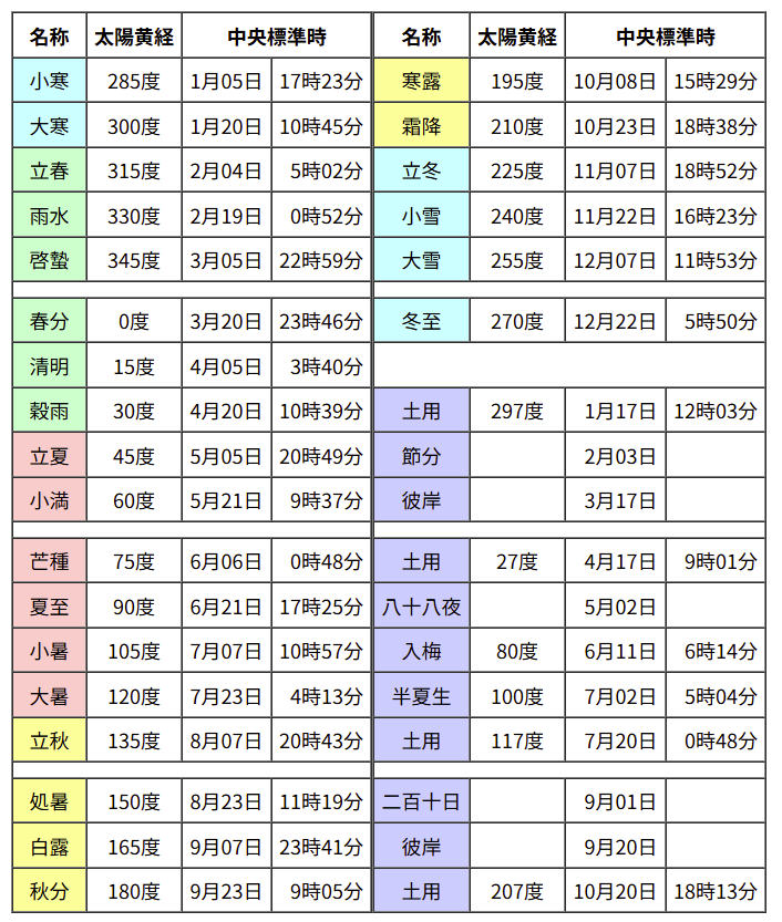 二十四節気および雑節