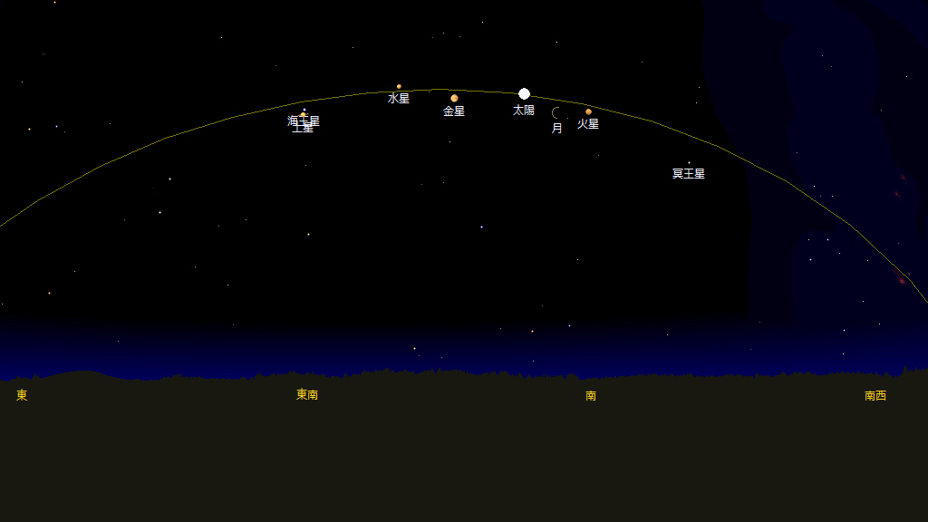 占星術をしている人で、この密集に注目する人はなぜか見かけないのですが、密集するということを、実際の空で表すとこうなります。