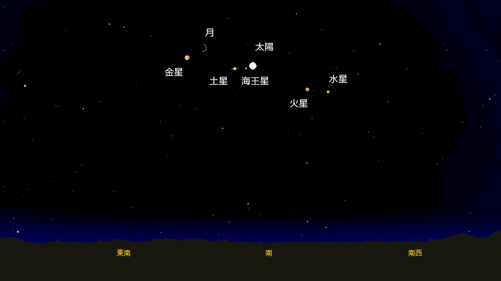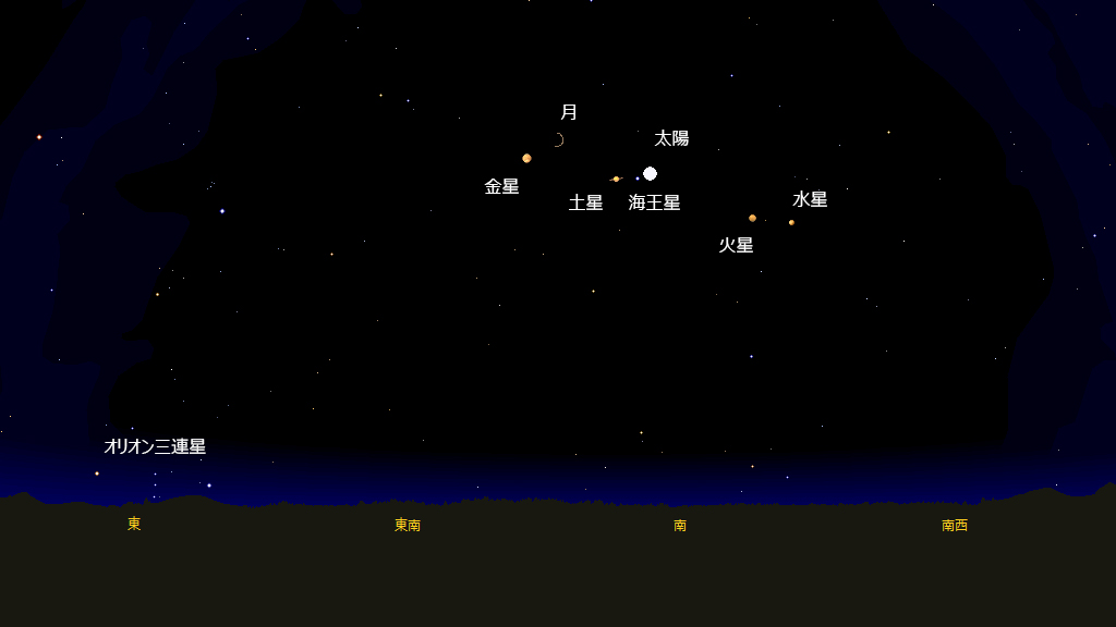狭い範囲に惑星と衛星が3つのグループで並んでいるのが分かります。